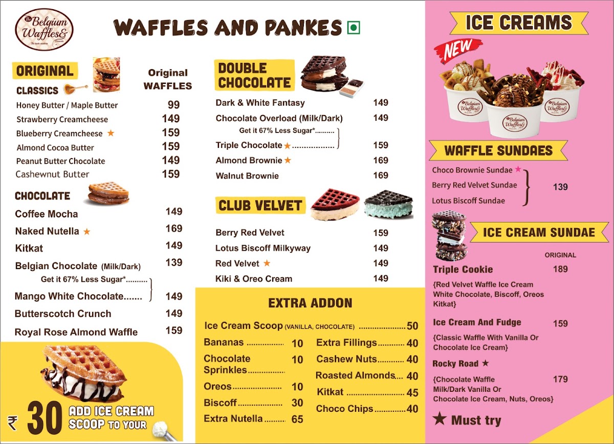 The Belgium Waffles & Desserts Menu